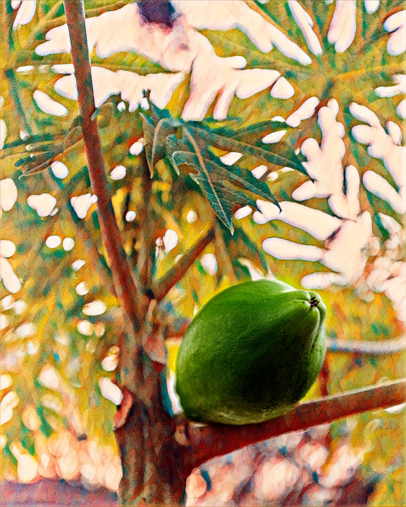 Spring Gift . A lone papaya hangs on the tree, The last to remain of the initial three. Through all of fall and winter it held, Soldiering on to ripen for me. Share this: Click to share on X (Opens in new window) X Click to share on Facebook (Opens in new window) Facebook Like Loading... Related