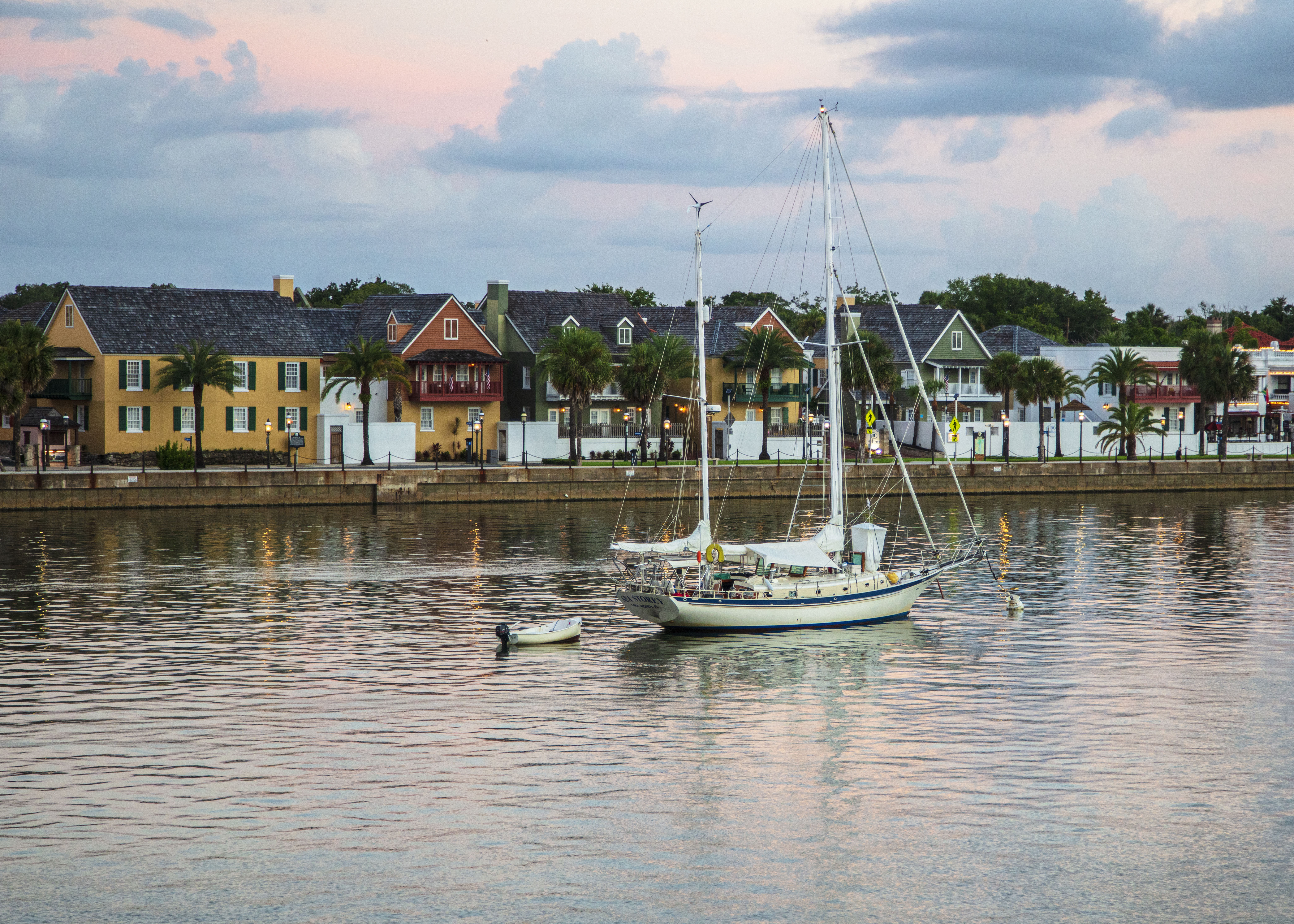 Something influences me to turn left toward the water today and I do. Ahead, I can see oranges and yellows mixing in the eastern sky with the sun just now beginning its rise over Anastasia Island across the bay. The winds are light, so if I am lucky when I reach the sea wall, the sailboats and their masts will be reflected in the still harbor waters, always a delightful sight at the end to a good morning walk.
