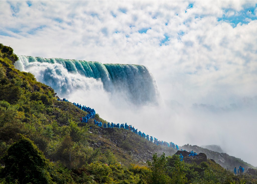 Call to Prayer Blue-ponchoed pilgrims Shuffling single file Absorb holy-watered wonder With each heavenward step